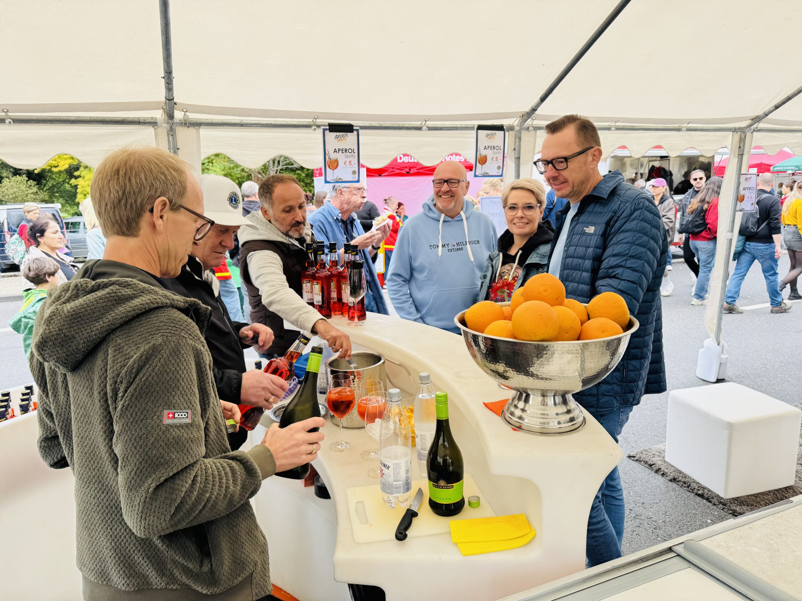 Mit den ersten Aperol Spritz und fröhlicher Musik war die Stimmung im Nu ausgelassen. Und dann geschah das Wunder: Die Sonne kam hervor und blieb den ganzen Tag bei uns. ☀️ So konnten wir gemeinsam mit den vielen Besucherinnen und Besuchern ein fröhliches Straßenfest im Trockenen feiern.