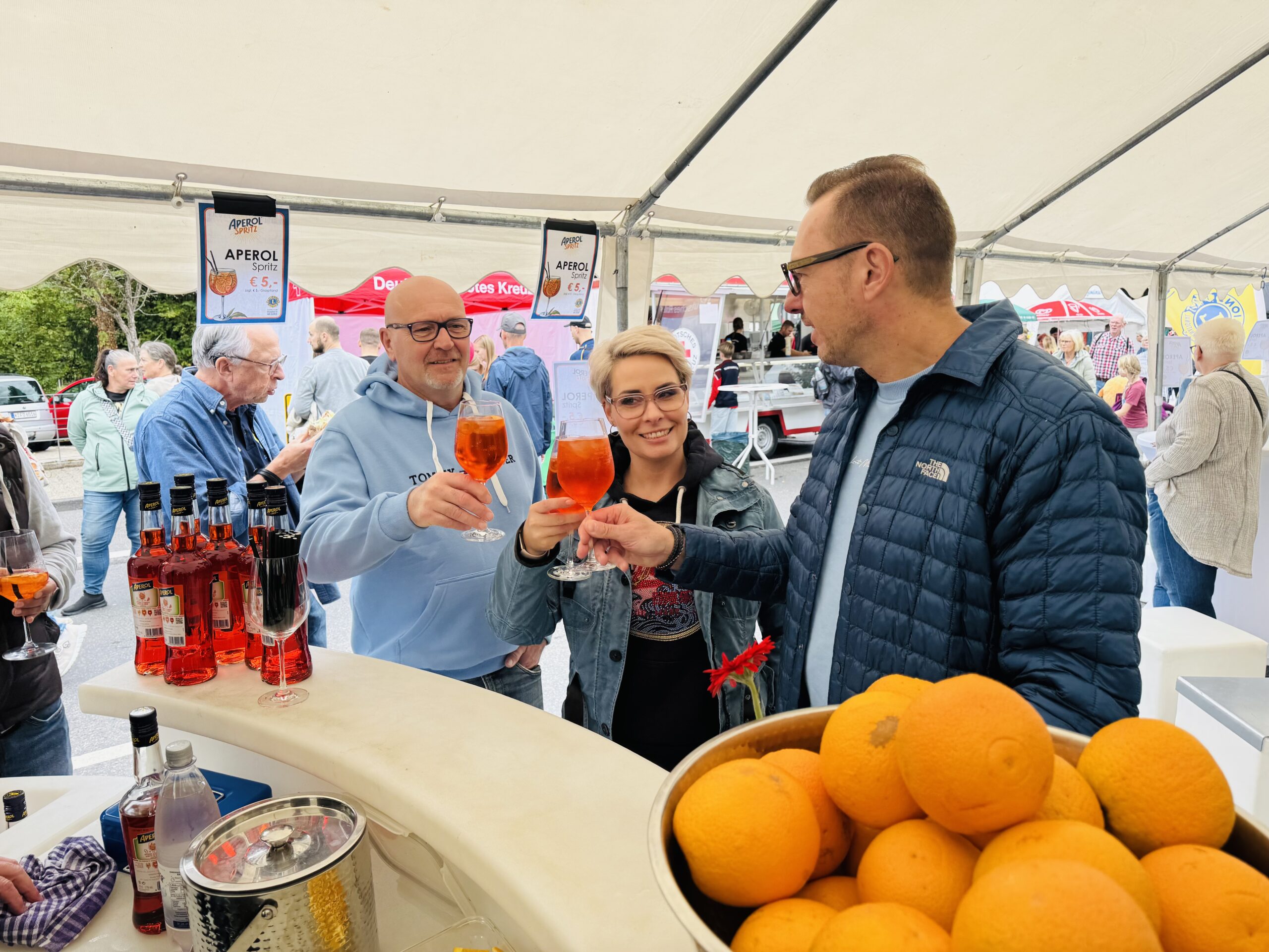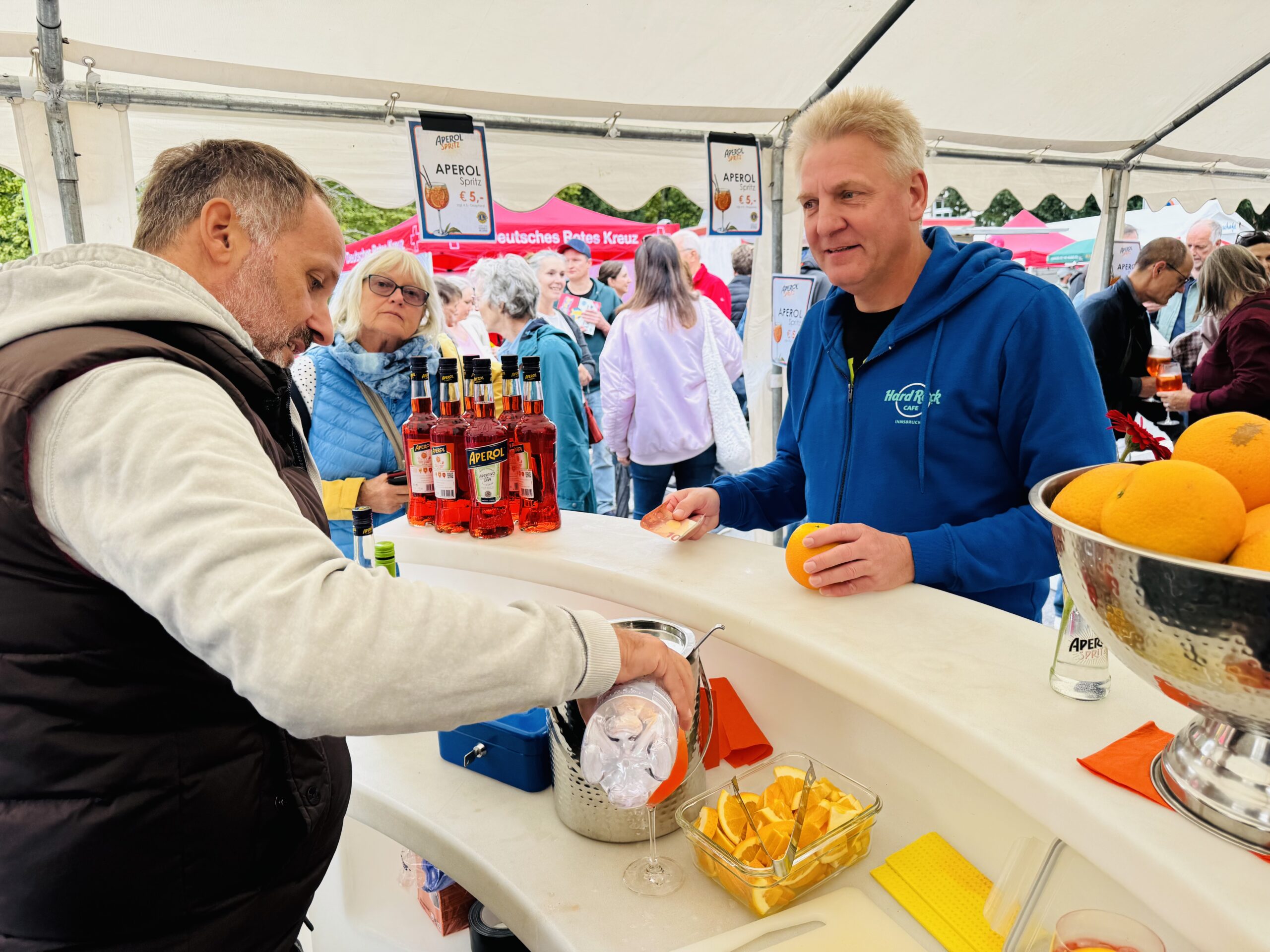 Unser Zelt entwickelte sich schnell zu einem echten Anziehungspunkt. Gefühlt ganz Rösrath traf sich nach dem Trödeln bei uns auf ein Glas Aperol, für gute Gespräche und das gemeinsame Ziel, etwas Gutes zu bewirken.