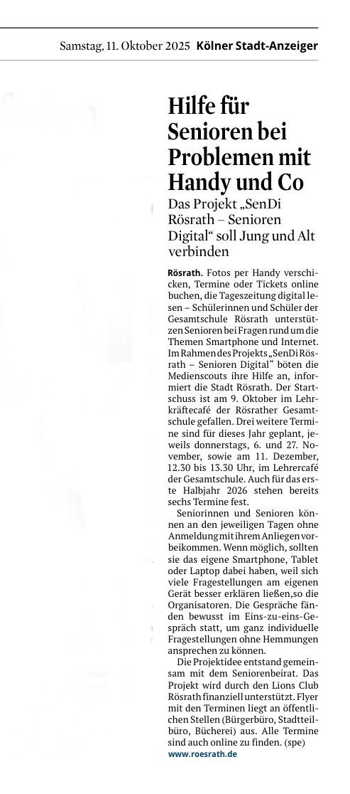 Der Lions Club Rösrath freut sich, das großartige Projekt „SenDi Rösrath – Senioren Digital“ begleiten und unterstützen zu dürfen. 🙌